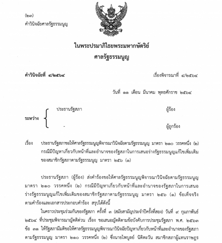 (คําวินิจฉัยที่ ๔/๒๕๖๔)