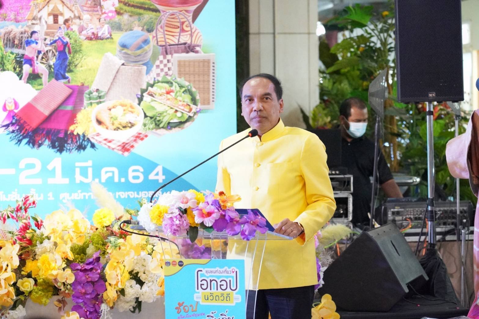 วันที่ 18 มีนาคม 2564 นายสุทธิพงษ์ จุลเจริญ อธิบดีกรมการพัฒนาชุมชน มอบหมายให้นายสุรศักดิ์ อักษรกุล รองอธิบดีกรมการพัฒนาชุมชน เป็นประธานในพิธีเปิดกิจกรรมทดสอบตลาด โครงการเพิ่มศักยภาพผลิตภัณฑ์ชุมชนและอาหารพื้นถิ่นชุมชนท่องเที่ยว OTOP นวัตวิถี พร้อมด้วยนายธีระชัย ลิขิตสมบูรณ์ รองประธานบริหารศูนย์การค้า เจเจ มอลล์ โดยมี นายวรงค์ แสงเมือง ผู้อำนายการสำนักส่งเสริมภูมิปัญญาท้องถิ่นและวิสาหกิจชุมชน นายนพรัตน์ ธำรงทรัพย์ ผู้อำนวยการกองการเจ้าหน้าที่ นายสมชาย หริกุลสวัสดิ์ ผู้อำนวยการกลุ่มพัฒนาระบบบริหาร นายพัลลภ ตันจนิยภรณ์ ผู้อำนวยการกลุ่มงานวิเทศสัมพันธ์รักษาการราชการแทนผู้อำนวยการ เข้าร่วมโครงการครั้งนี้ ซึ่งเป็นการขับเคลื่อนกิจกรรมทดสอบตลาดให้กับผลิตภัณฑ์ที่ผ่านการพัฒนายกระดับผลิตภัณฑ์ จากหมู่บ้านชุมชนท่องเที่ยว OTOP นวัตวิถี จำนวน 29 จังหวัด รวมทั้งสิ้น 87 ผลิตภัณฑ์ พร้อมทั้งเดินชมบูธผลิตภัณฑ์ ณ ลานโปรโมชั่น ชั้น 1 ศูนย์การค้าเจเจมอลล์ เขตจตุจักร กรุงเทพมหานคร ระหว่างวันที่ 17 – 21 มีนาคม 2564