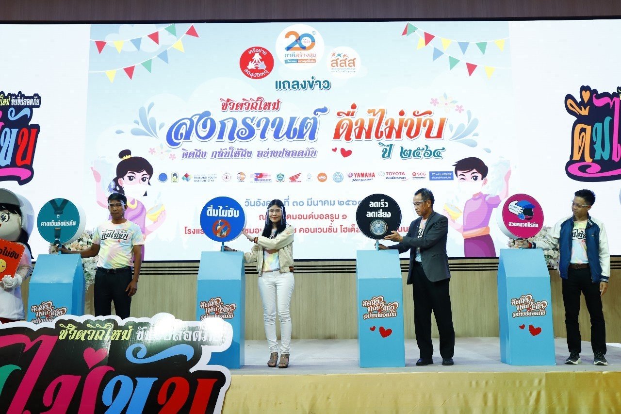 วันที่ 30 มีนาคม 2564 ที่โรงแรมแกรนด์ริชมอนด์ สไตลิช คอนเวนชั่น จังหวัดนนทบุรี สำนักงานกองทุนสนับสนุนการสร้างเสริมสุขภาพ (สสส.) ร่วมกับสำนักงานเครือข่ายลดอุบัติเหตุ (สคอ.) แถลงข่าว “ชีวิตวิถีใหม่ สงกรานต์ดื่มไม่ขับ คิดถึงกลับให้ถึงอย่างปลอดภัย” ปี 2564 เพื่อร่วมรณรงค์ป้องกันและลดอุบัติเหตุทางถนน สร้างกระแสรับรู้ เพิ่มความตระหนักขับขี่ปลอดภัยในแบบชีวิตวิถีใหม่แก่ผู้ใช้รถใช้ถนนในช่วงเทศกาลสงกรานต์