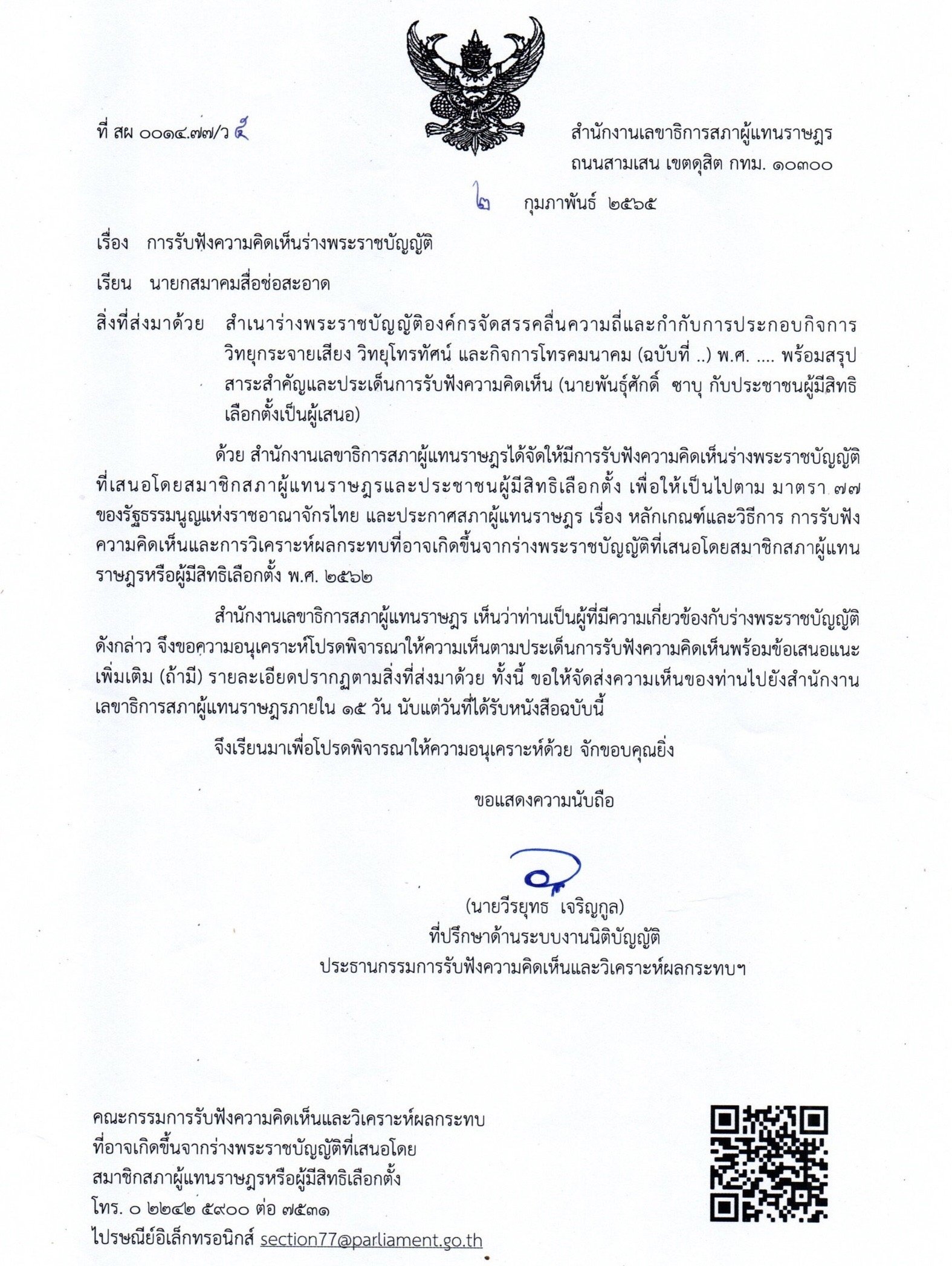 ประกอบร่างพระราชบัญญัติองค์กรจัดสรรคลื่นความถี่และกำกับการประกอบกิจการวิทยุกระจายเสียง วิทยุโทรทัศน์ และกิจการโทรคมนาคม (ฉบับที่ ..)
