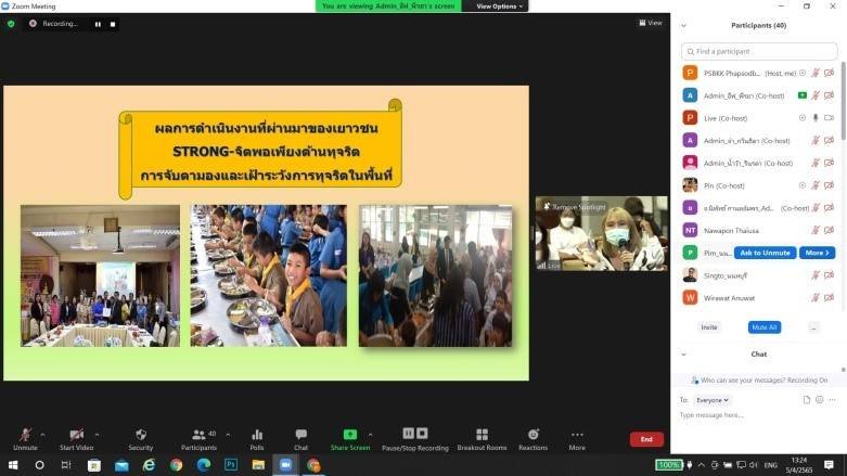 เมื่อวันที่ 4 เมษายน 2565 สำนักงาน ป.ป.ช. โดยสำนักส่งเสริมและบูรณาการการมีส่วนร่วมต้านทุจริตจัดกิจกรรมการประชุมเชิงปฏิบัติการสมาชิกชมรม STRONG-จิตพอเพียงต้านทุจริต เพื่อปักหมุดพื้นที่เสี่ยงต่อการทุจริต ภาค 1 และ กรุงเทพมหานคร ภายใต้โครงการการพัฒนาแผนที่พื้นที่เสี่ยงต่อการทุจริตในประเทศไทยอย่างมีส่วนร่วมของภาคประชาชน ประจำปีงบประมาณ พ.ศ. 2565 ในรูปแบบ Onsite ในสถานที่ (สำนักงาน ป.ป.ช. ประจำจังหวัดในพื้นที่ภาค 1 และ โรงแรมมิราเคิล แกรนด์ คอนเวนชั่น กรุงเทพมหานคร) และ Online Platform ผ่านระบบ Zoom Webinar ส่งสัญญาณจากโรงแรมมิราเคิล แกรนด์ คอนเวนชั่น เขตหลักสี่ กรุงเทพมหานคร