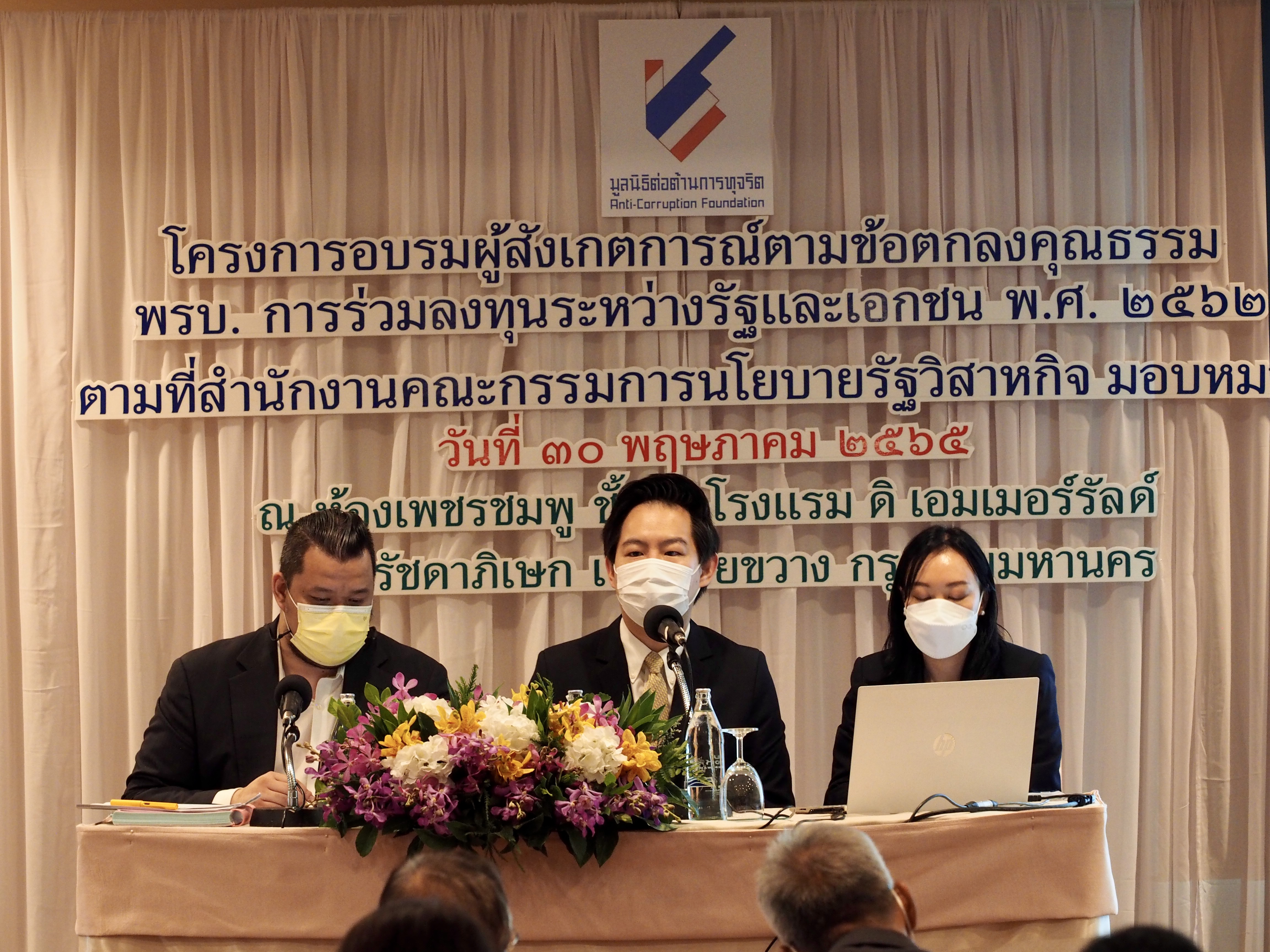 มูลนิธิต่อต้านการทุจริต ผนึกกำลังสำนักงานคณะกรรมการนโยบายรัฐวิสาหกิจ (สคร.) จัดโครงการอบรมผู้สังเกตการณ์ ตามข้อตกลงคุณธรรมพระราชบัญญัติการร่วมลงทุนระหว่างรัฐและเอกชน พ.ศ. 2562