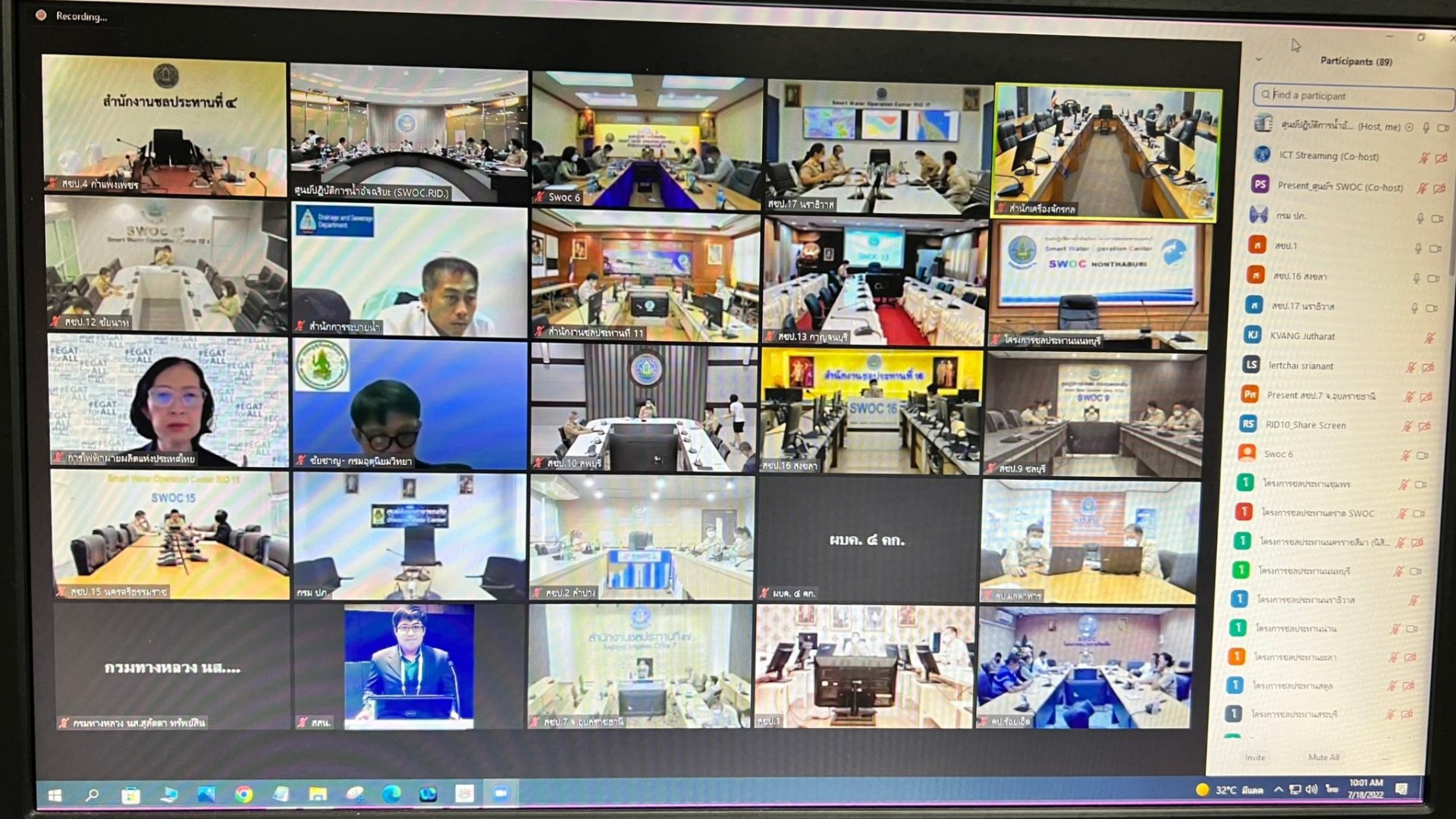 วันที่ 18 กรกฎาคม 2565 ที่ศูนย์ปฏิบัติการน้ำอัจฉริยะ (SWOC) กรมชลประทาน ถนนสามเสน กรุงเทพมหานคร ดร.ทวีศักดิ์ ธนเดโชพล รองอธิบดีกรมชลประทาน เป็นประธานการประชุมคณะอนุกรรมการติดตามและวิเคราะห์แนวโน้มสถานการณ์น้ำ ผ่านระบบ Video Conference ไปยังสำนักงานชลประทานที่ 1-17 และหน่วยงานที่เกี่ยวข้อง อาทิ กรมอุตุนิยมวิทยา สถาบันสารสนเทศทรัพยากรน้ำ กรมทรัพยากรน้ำ กรมป้องกันและบรรเทาสาธารณภัย สำนักการระบายน้ำกรุงเทพมหานคร (กทม.) การไฟฟ้าฝ่ายผลิตแห่งประเทศไทย (กฟผ.) เพื่อติดตามและวิเคราะห์สถานการณ์น้ำในอ่างเก็บน้ำ แหล่งน้ำ และแม่น้ำสายหลักต่าง ๆ สำหรับเป็นข้อมูลในการบริหารจัดการน้ำให้สอดคล้องและเหมาะสมในแต่ละพื้นที่