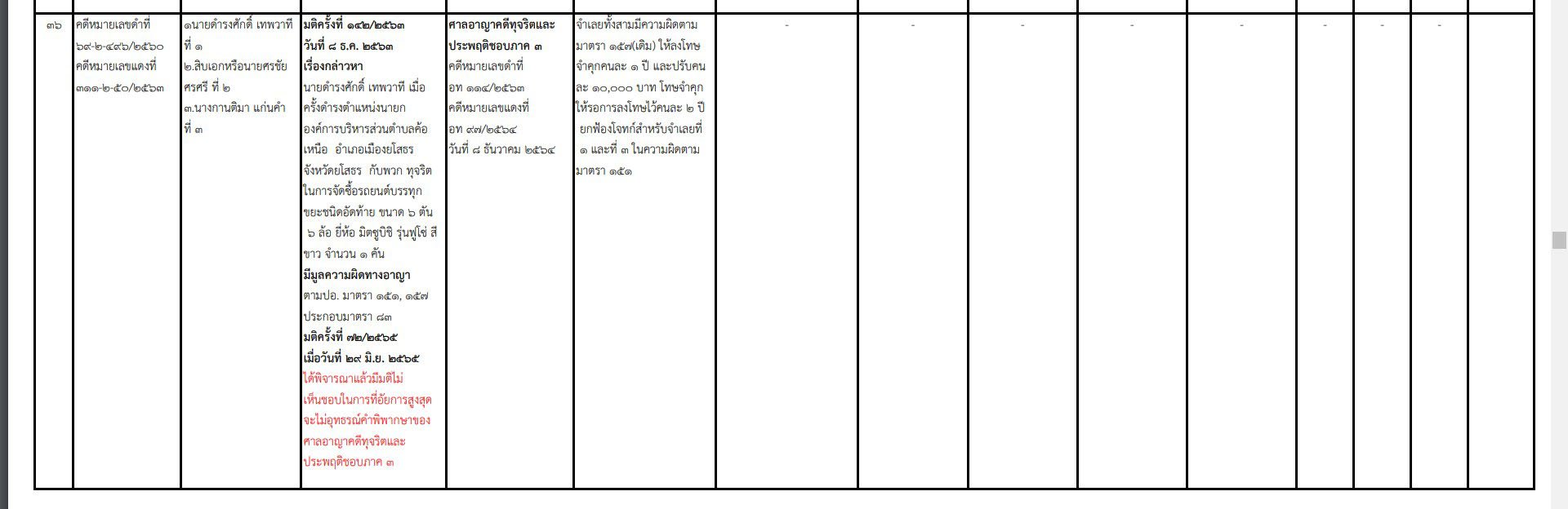 ล่าสุด เมื่อวันที่ 8 ธันวาคม 2564 ศาลอาญาคดีทุจริตและประพฤติมิชอบภาค 3 มีคำพิพากษาว่า นายดำรงศักดิ์ เทพวาที จำเลยที่ 1 สิบเอกหรือนายศรชัย ศรศรี จำเลยที่ 2 นางกานติมา แก่นคำ จำเลยที่ 3 มีความผิดตามมาตรา 157