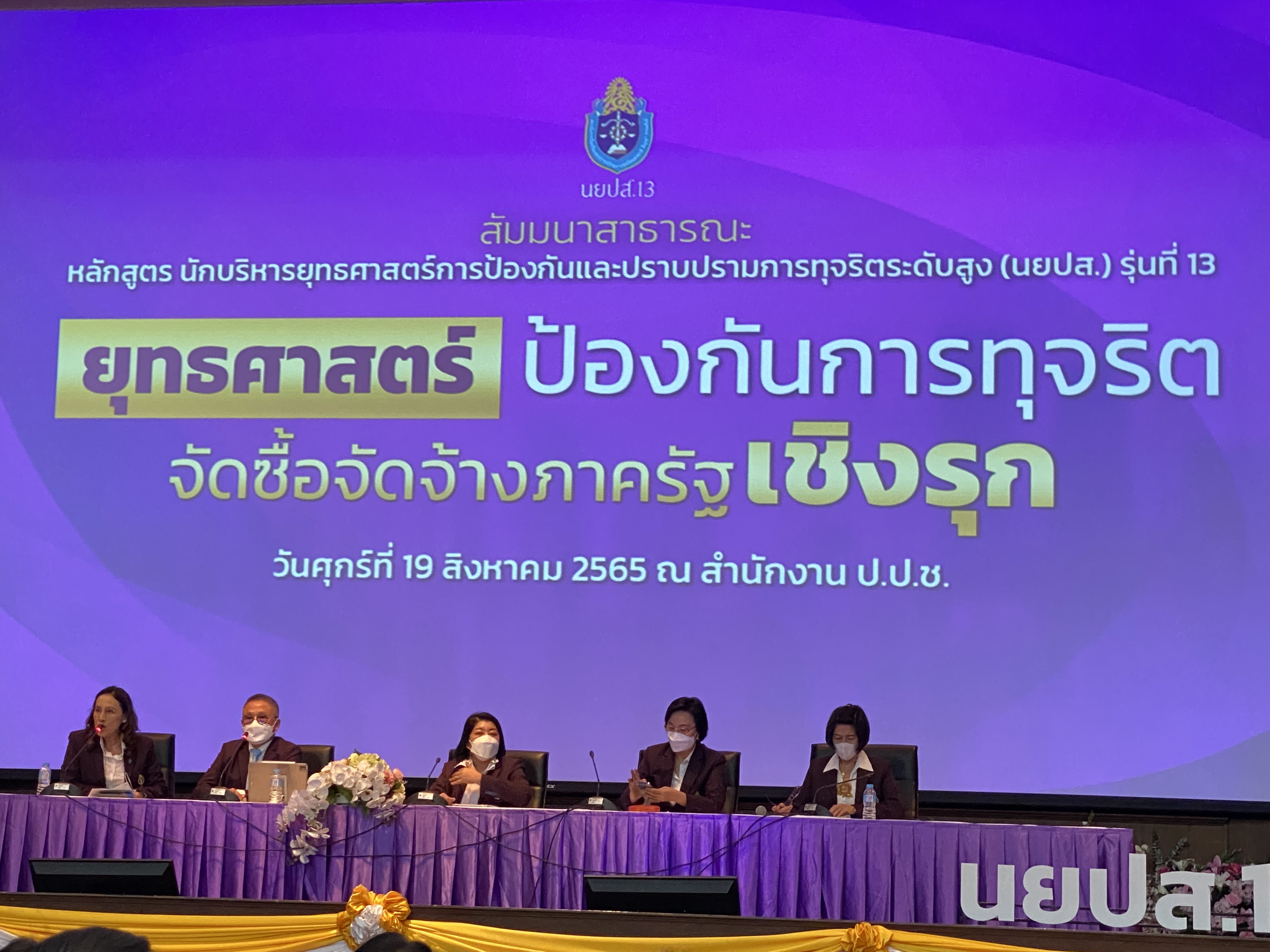 สัมมนาสาธารณะ เรื่อง ‘การป้องกันและปราบปรามการทุจริตการจัดซื้อจัดจ้างภาครัฐเชิงรุก’ ของ 'นักบริหารยุทธศาสตร์การป้องกันและปราบปรามการทุจริตระดับสูง' (นยปส.) รุ่นที่ 13