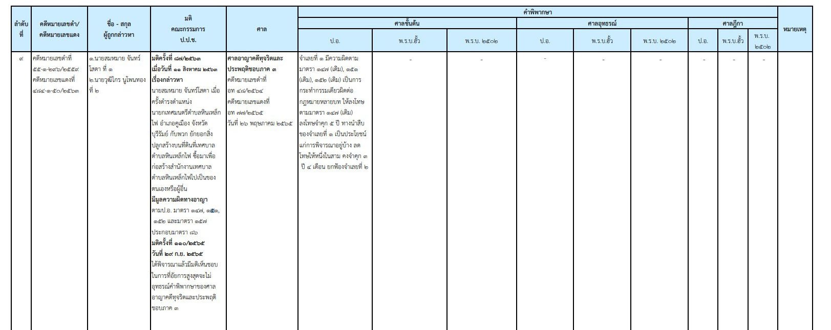 ความคืบหน้าล่าสุด เมื่อวันที่ 26 พฤษภาคม 2565 ศาลอาญาคดีทุจริตและประพฤติมิชอบภาค 3 มีคำพิพากษาว่า นายสมหมาย จันทร์โสดา จำเลยที่ 1 มีความผิดตามมาตรา 147 , 151 , 152 เป็นการกระทำกรรมเดียวผิดต่อกฎหมายหลายบท ให้ลงโทษตามมาตรา 147