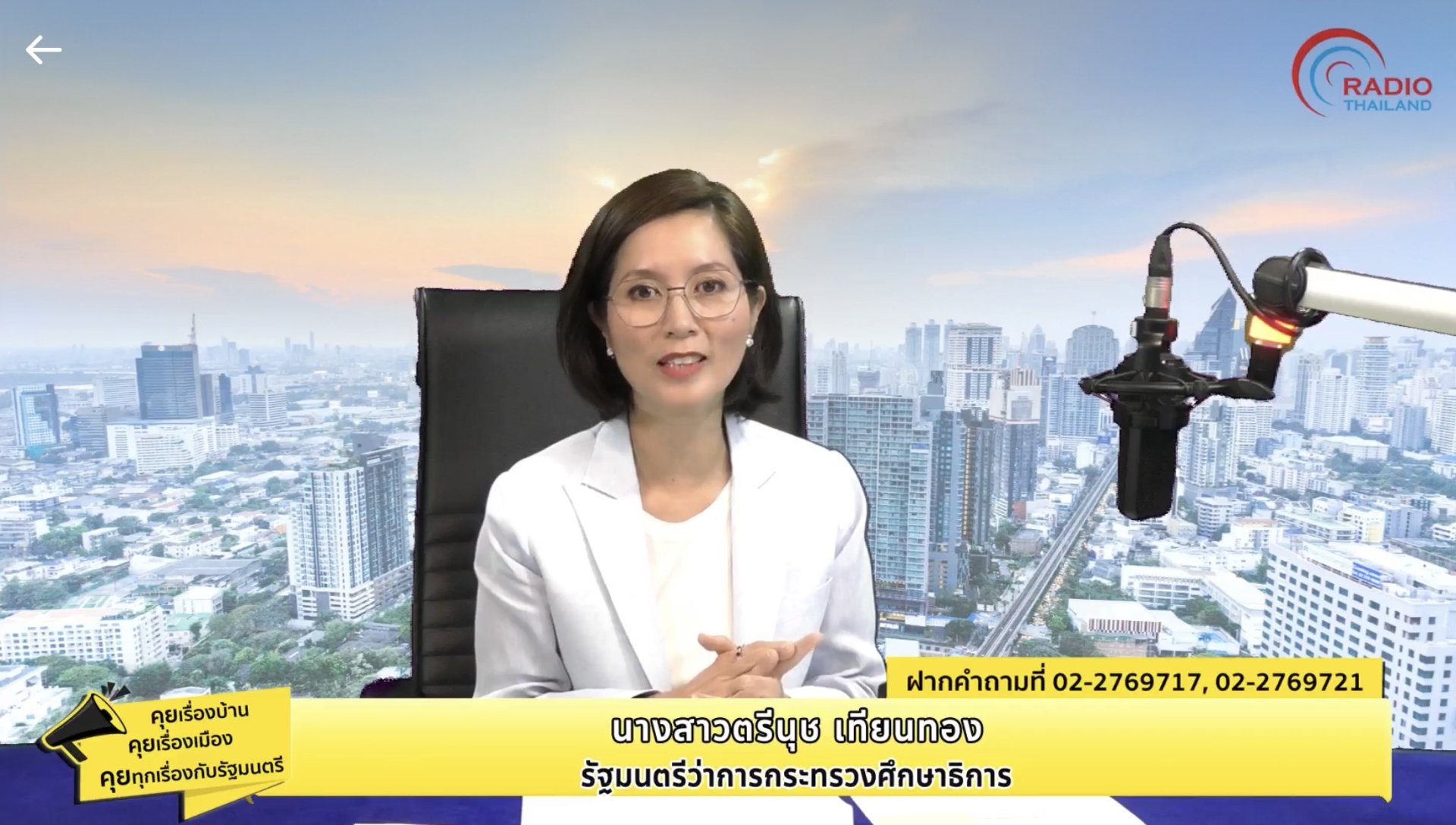 นางสาวตรีนุช เทียนทอง รัฐมนตรีว่าการกระทรวงศึกษาธิการ ประเด็น "ยกระดับการศึกษา พัฒนาคุณภาพเด็กไทย"