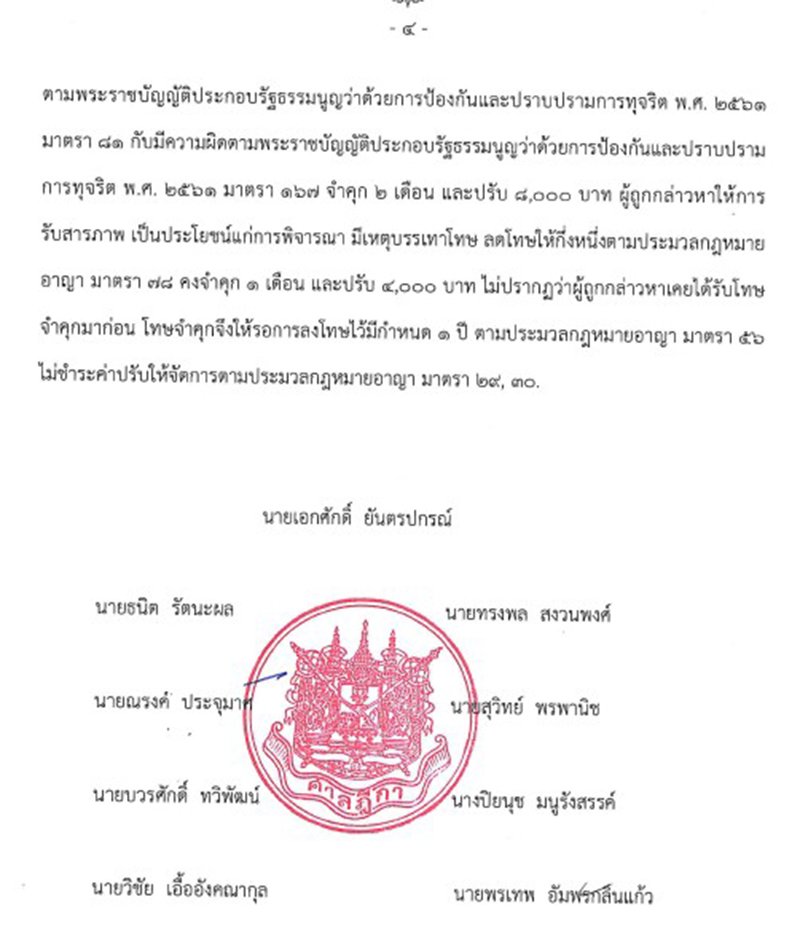 พิพากษาว่า นายวิภาส สุชาติล้ำพงศ์ ผู้ถูกกล่าวหา จงใจไม่ยื่นบัญชีแสดงรายการทรัพย์สินและหนี้สินและเอกสารประกอบต่อผู้ร้อง และมีพฤติการณ์อันควรเชื่อได้ว่ามีเจตนาไม่แสดงที่มาแห่งทรัพย์สินหรือหนี้สิน กรณีพ้นจากตําแหน่งรองนายกองค์การบริหารส่วนจังหวัดนนทบุรี ตามพระราชบัญญัติประกอบรัฐธรรมนูญว่าด้วยการป้องกันและปราบปรามการทุจริต พ.ศ. 2561 มาตรา 114 วรรคสอง (1) ให้เพิกถอนสิทธิสมัครรับเลือกตั้งของผู้ถูกกล่าวหาตลอดไป ตามพระราชบัญญัติประกอบรัฐธรรมนูญว่าด้วยการป้องกันและปราบปรามการทุจริต พ.ศ. 2561 มาตรา 81 กับมีความผิดตามพระราชบัญญัติประกอบรัฐธรรมนูญว่าด้วยการป้องกันและปราบปรามการทุจริต พ.ศ. 2561 มาตรา 167 จําคุก 2 เดือน และปรับ 8,000 บาท ผู้ถูกกล่าวหาให้การรับสารภาพเป็นประโยชน์แก่การพิจารณา มีเหตุบรรเทาโทษ ลดโทษให้กึ่งหนึ่งตามประมวลกฎหมายอาญา มาตรา 78 คงจําคุก 1 เดือน และปรับ 4,000 บาท ไม่ปรากฏว่าผู้ถูกกล่าวหาเคยได้รับโทษ จําคุกมาก่อน โทษจําคุกจึงให้รอการลงโทษไว้มีกําหนด 1 ปี ตามประมวลกฎหมายอาญา มาตรา 56 ไม่ชําระค่าปรับให้จัดการตามประมวลกฎหมายอาญา มาตรา 29, 30.