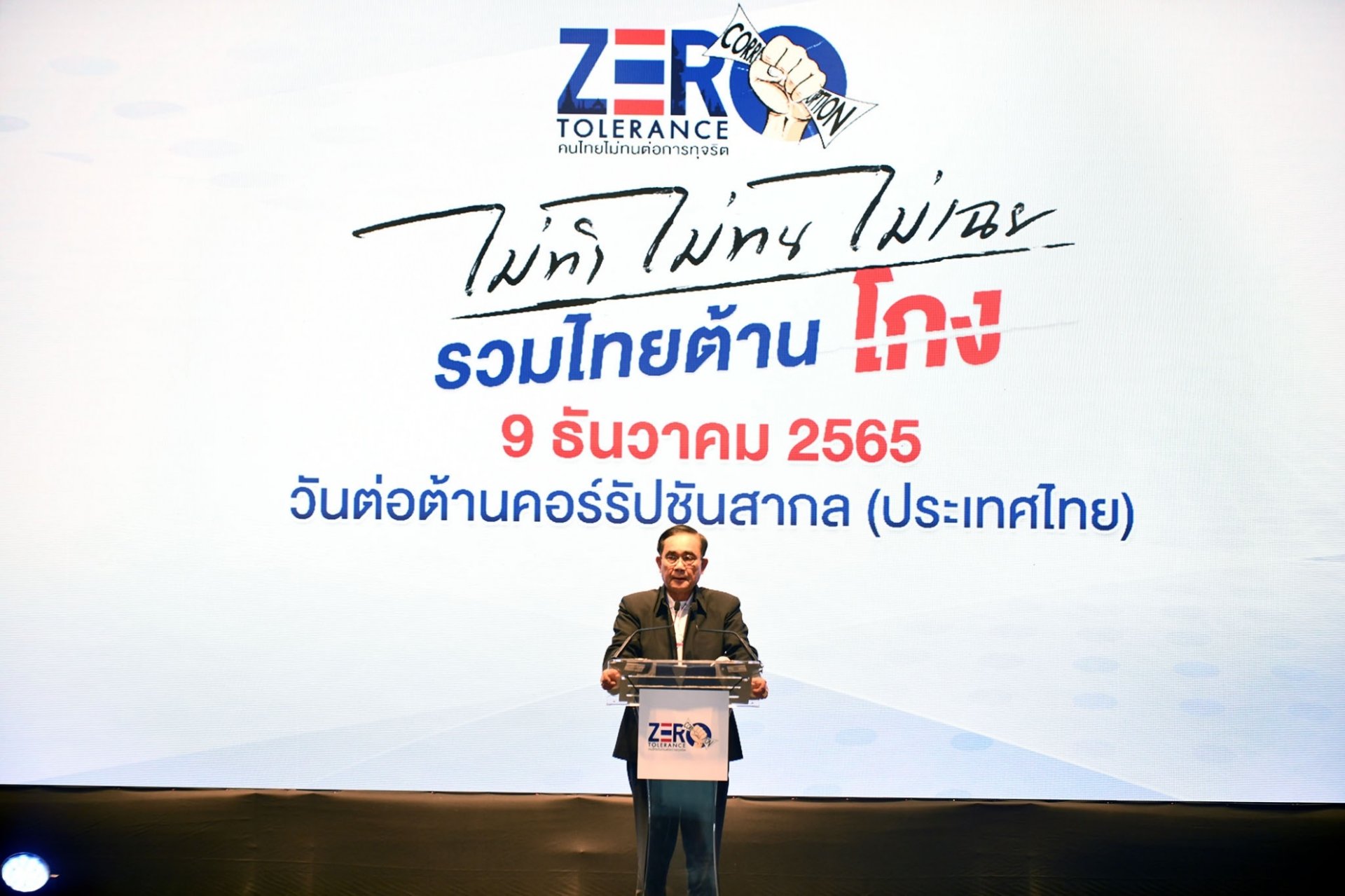 วันที่ 9 ธันวาคม 2565 เวลา 10.00 น. ณ ห้องนนทบุรี 1 ชั้น 3 อาคาร 4 สำนักงาน ป.ป.ช. จังหวัดนนทบุรี พลเอก ประยุทธ์ จันทร์โอชา นายกรัฐมนตรีและรัฐมนตรีว่าการกระทรวงกลาโหม เป็นประธานการประกาศเจตนารมณ์การต่อต้านการทุจริต ในงานวันต่อต้านคอร์รัปชันสากล (ประเทศไทย) ภายใต้แนวคิด “ไม่ทำ ไม่ทน ไม่เฉย รวมไทยต้านโกง” โดยมี พลตำรวจเอก วัชรพล ประสารราชกิจ ประธานกรรมการป้องกันและปราบปรามการทุจริตแห่งชาติ พลเอก อนุพงษ์ เผ่าจินดา รัฐมนตรีว่าการกระทรวงมหาดไทย พลเอก ชัยชาญ ช้างมงคล รัฐมนตรีช่วยว่าการกระทรวงกลาโหม คณะกรรมการป้องกันและปราบปรามการทุจริตในภาครัฐ องค์กรต่อต้านคอร์รัปชัน (ประเทศไทย) หน่วยงานภาครัฐ รัฐวิสาหกิจ ภาคเอกชน ประชาชน และเจ้าหน้าที่ที่เกี่ยวข้อง เข้าร่วมงาน เพื่อร่วมกันแสดงพลังในการต่อต้านการทุจริต แสดงถึงเจตนารมณ์ของทุกภาคส่วนที่มีความมุ่งมั่นในการแก้ไขปัญหาอย่างต่อเนื่อง พร้อมปลุกกระแสสังคมที่ไม่ทนต่อการทุจริตในทุกรูปแบบ และทำให้ประชาชนคนไทยรวมทั้งนานาชาติ ได้รับรู้ผลการต่อสู้กับปัญหาคอร์รัปชันของประเทศไทย และการแสดงเจตจำนงต่อต้านการทุจริตของทุกภาคส่วน