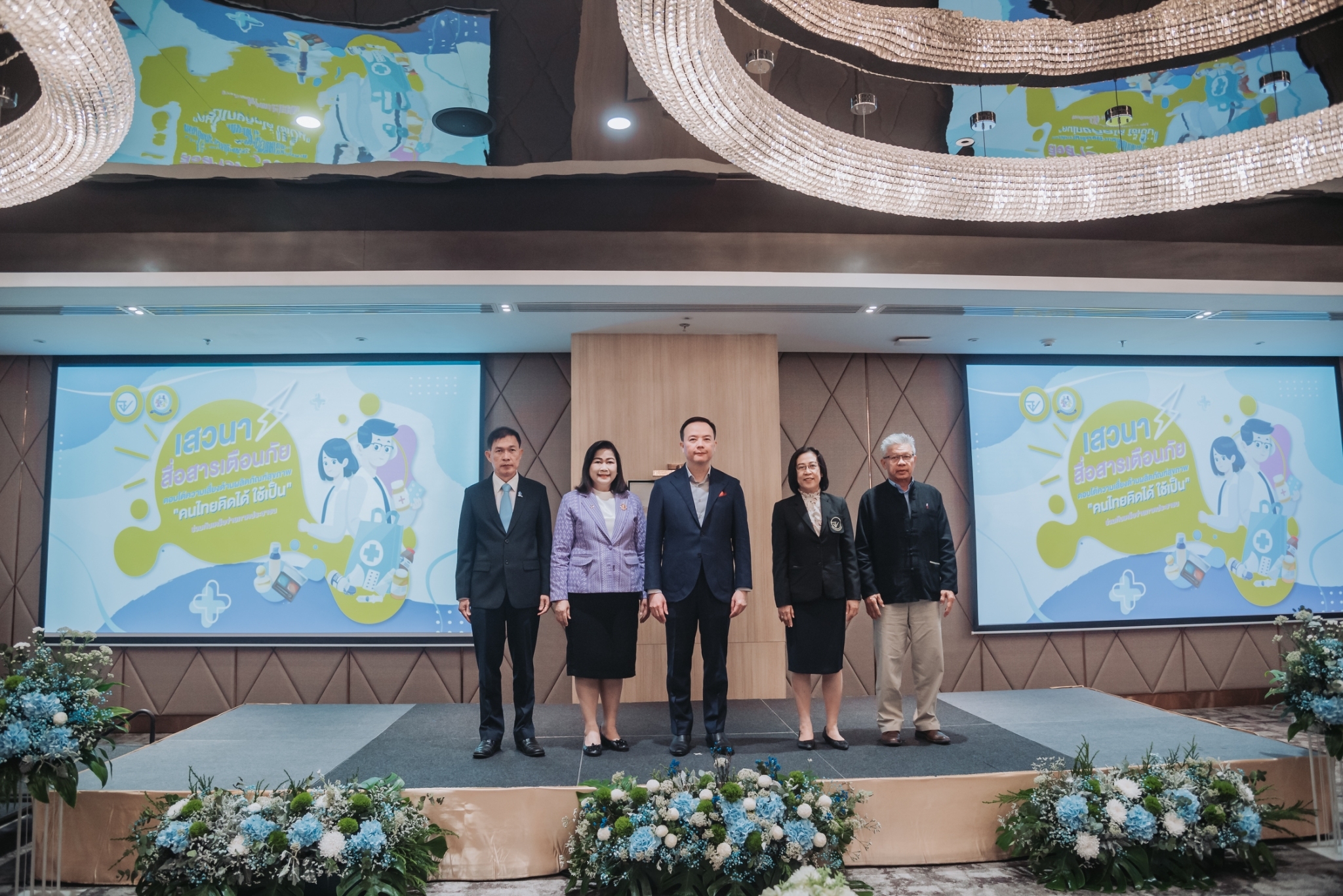 เมื่อวันที่ 11 มีนาคม 2567 สำนักงานคณะกรรมการอาหารและยา (อย.) จัดงานเสวนาสื่อสารเตือนภัย ตอบโต้ความเสี่ยงด้านผลิตภัณฑ์สุขภาพ “คนไทยคิดได้ ใช้เป็น” โดยมีคณะทำงานภาคประชาชน ซึ่งเป็นหน่วยงานที่มีศักยภาพในการเข้าถึงผู้บริโภคทั้งหมด 36 องค์กรเข้าร่วมงาน เพื่อสร้างความรอบรู้และสื่อสารเตือนภัยผลิตภัณฑ์สุขภาพไปยังผู้บริโภค โดยนายแพทย์ณรงค์ อภิกุลวณิช เลขาธิการคณะกรรมการอาหารและยา เปิดเผยว่า อย. มีภารกิจในการคุ้มครองผู้บริโภคให้ได้รับความปลอดภัยจากการบริโภคผลิตภัณฑ์สุขภาพ ซึ่งนอกจากการกำกับดูแลคุณภาพมาตรฐานผลิตภัณฑ์ทั้งก่อนและหลังออกสู่ตลาดแล้ว อย. ยังมุ่งส่งเสริมให้ผู้บริโภคมีความรอบรู้ในการเลือกซื้อ เลือกใช้ผลิตภัณฑ์สุขภาพอย่างปลอดภัย สมประโยชน์