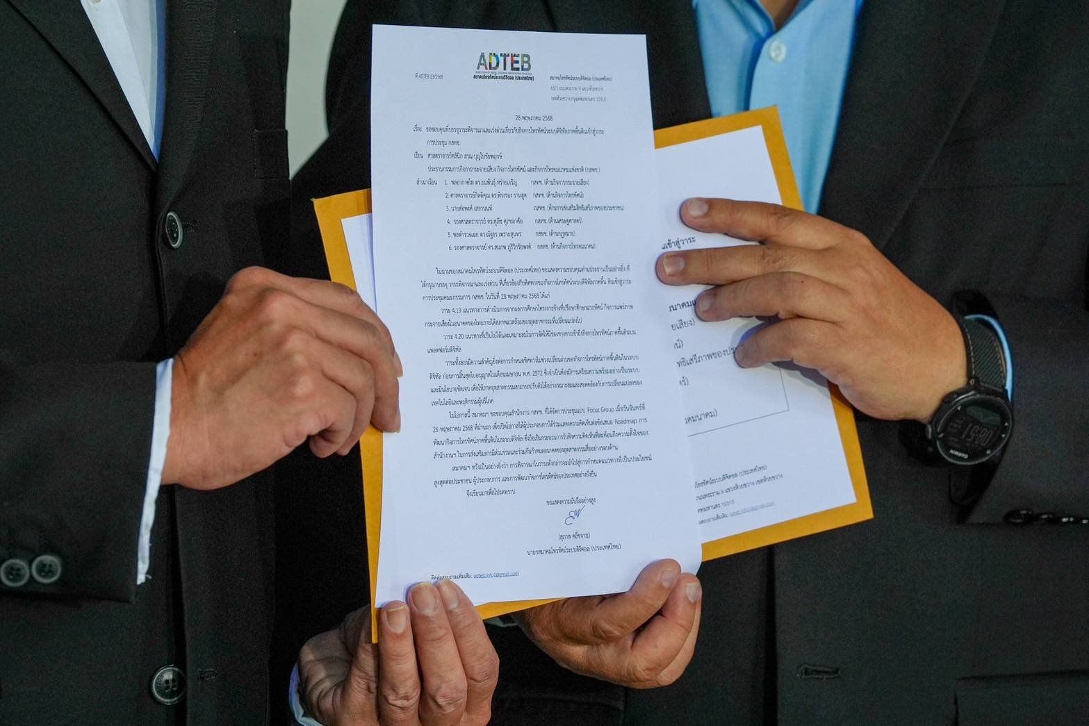อย่างไรก็ตาม เมื่อเวลา 08.30 น. ตัวแทนสมาคมโทรทัศน์ระบบดิจิตอล (ประเทศไทย) นำโดย นายอดิศักดิ์ ลิมปรุ่งพัฒนกิจ อุปนายกสมาคมฯ นายชาคริต ดิเรกวัฒนชัย อุปนายกสมาคมฯ และนายเดียว วรตั้งตระกูล กรรมการและเลขานุการและนายทะเบียนสมาคมฯ เดินทางเข้ายื่นหนังสือขอบคุณ ประธาน กสทช. หลังจัด Focus Group เมื่อ 26 พ.ค.68 เพื่อรับฟังความคิดเห็นเกี่ยวกับประเด็นที่จะนำไปประกอบการจัดทำ (ร่าง) แผนที่นำทาง (Roadmap) กิจการโทรทัศน์และการแพร่ภาพและเสียงของประเทศไทย
